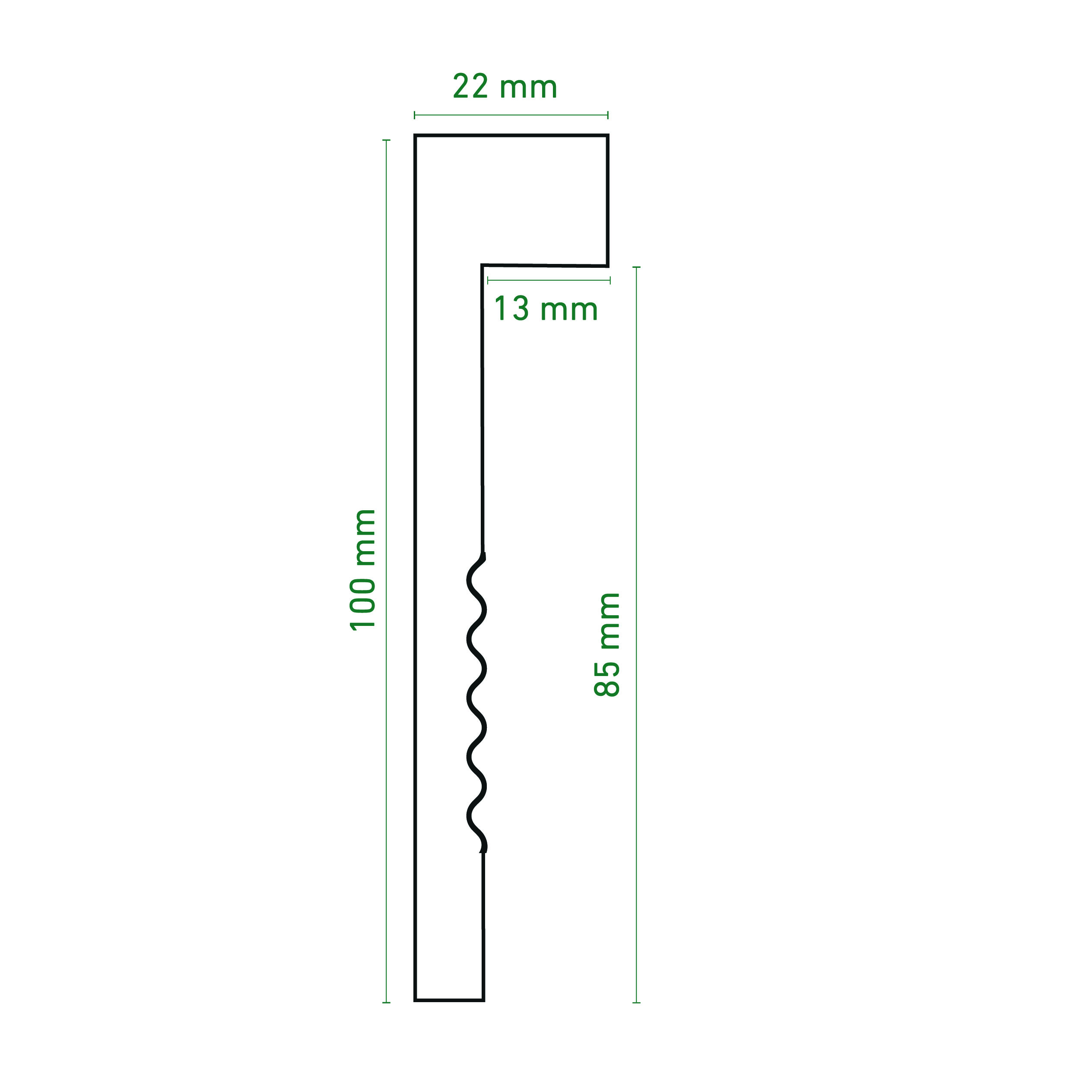 Este cobre-rodapé maciço da Dioco tem uma medida de 2200 x 100 x 22 mm, com um espaço útil de 85 mm de altura e 13 mm de largura interior, pensado para ser colocado facilmente sobre rodapés já instalados, sem necessidade de os remover. Produzido com materiais reciclados e 100% reciclável, alia sustentabilidade e resistência num design liso e elegante.