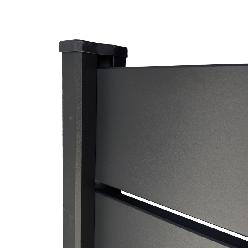 A vedação apresenta uma altura total de 1000 mm, medida desde a base do poste até ao seu ponto mais alto. Por sua vez, a altura do painel formado pelas lâminas é de 960 mm, incluindo os espaçadores. No caso de instalar as lâminas sem espaçadores, esta altura reduz-se para 900 mm.
