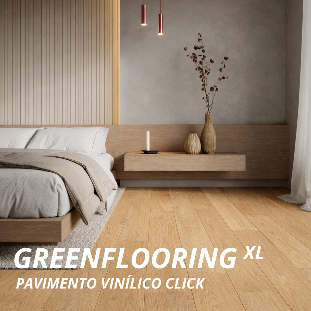 O pavimento vinílico Greenflooring XL combina a estética da madeira com as vantagens técnicas do vinílico em sistema click. É a solução ideal para renovar qualquer espaço habitacional ou zonas de elevado tráfego, garantindo durabilidade, conforto e facilidade de instalação.