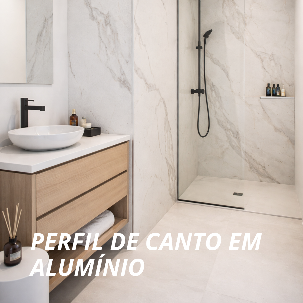 Disponível em acabamento alumínio e na cor preta, integra-se facilmente com diferentes estilos de revestimento, oferecendo uma solução estética, funcional e duradoura para o acabamento de cantos com máxima qualidade.
